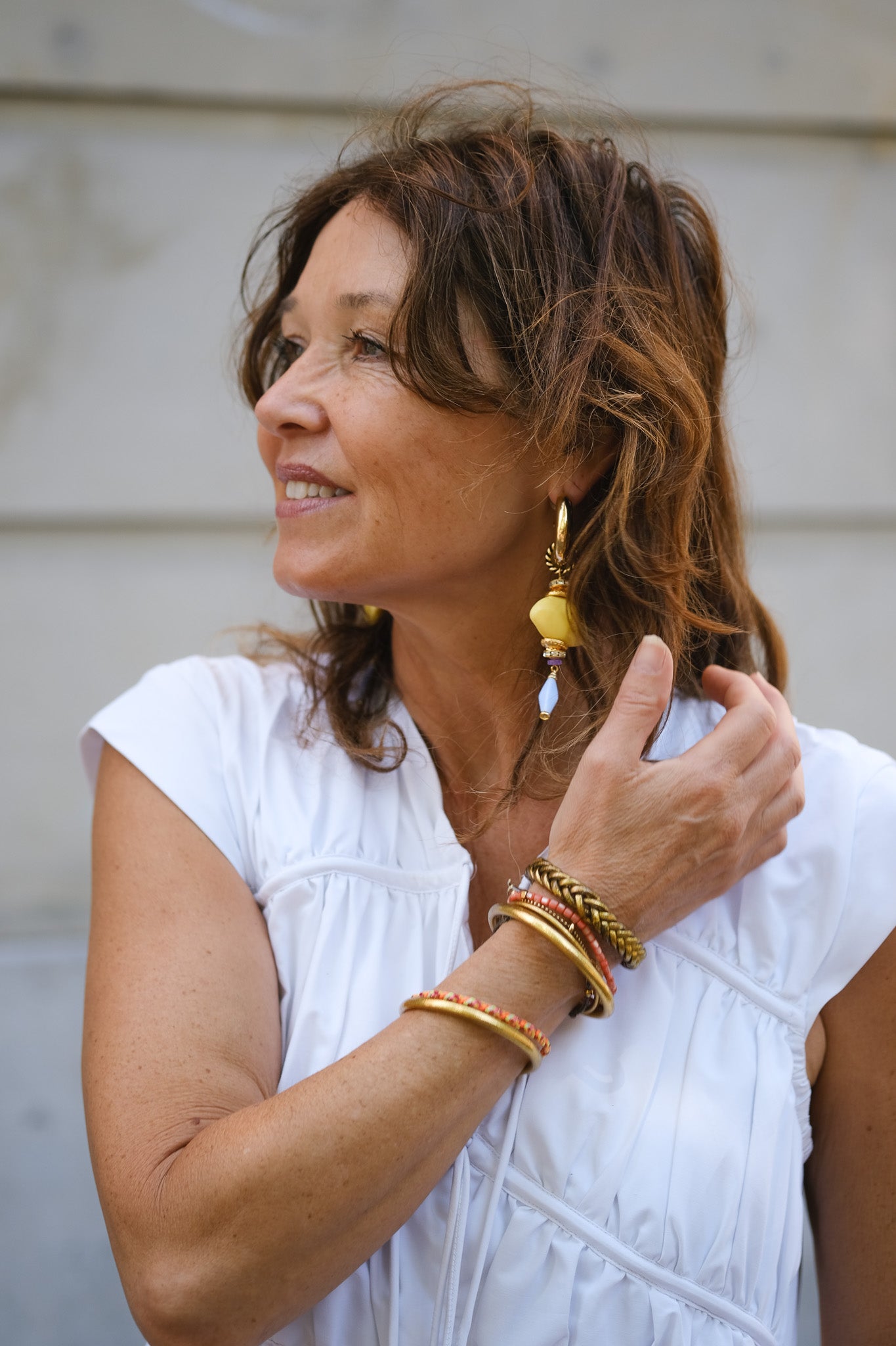 The Bianca earrings bring a fresh, stylish vibe to your jewelry collection. 🤍The design is both elegant and striking – perfect for those who love a feminine look with character. They are handmade from various materials and feel comfortable, even when worn for extended periods. 🌸 All our jewelry is nickel-free and hypoallergenic.