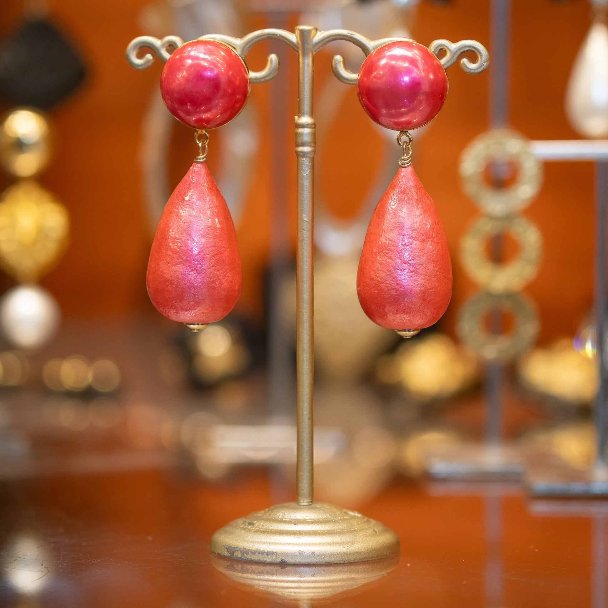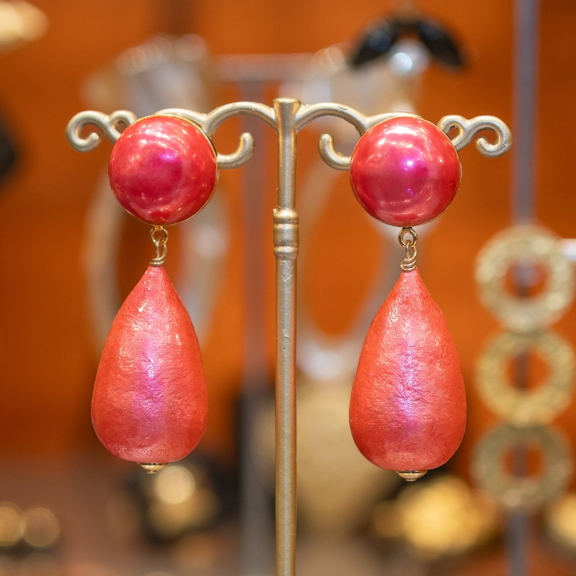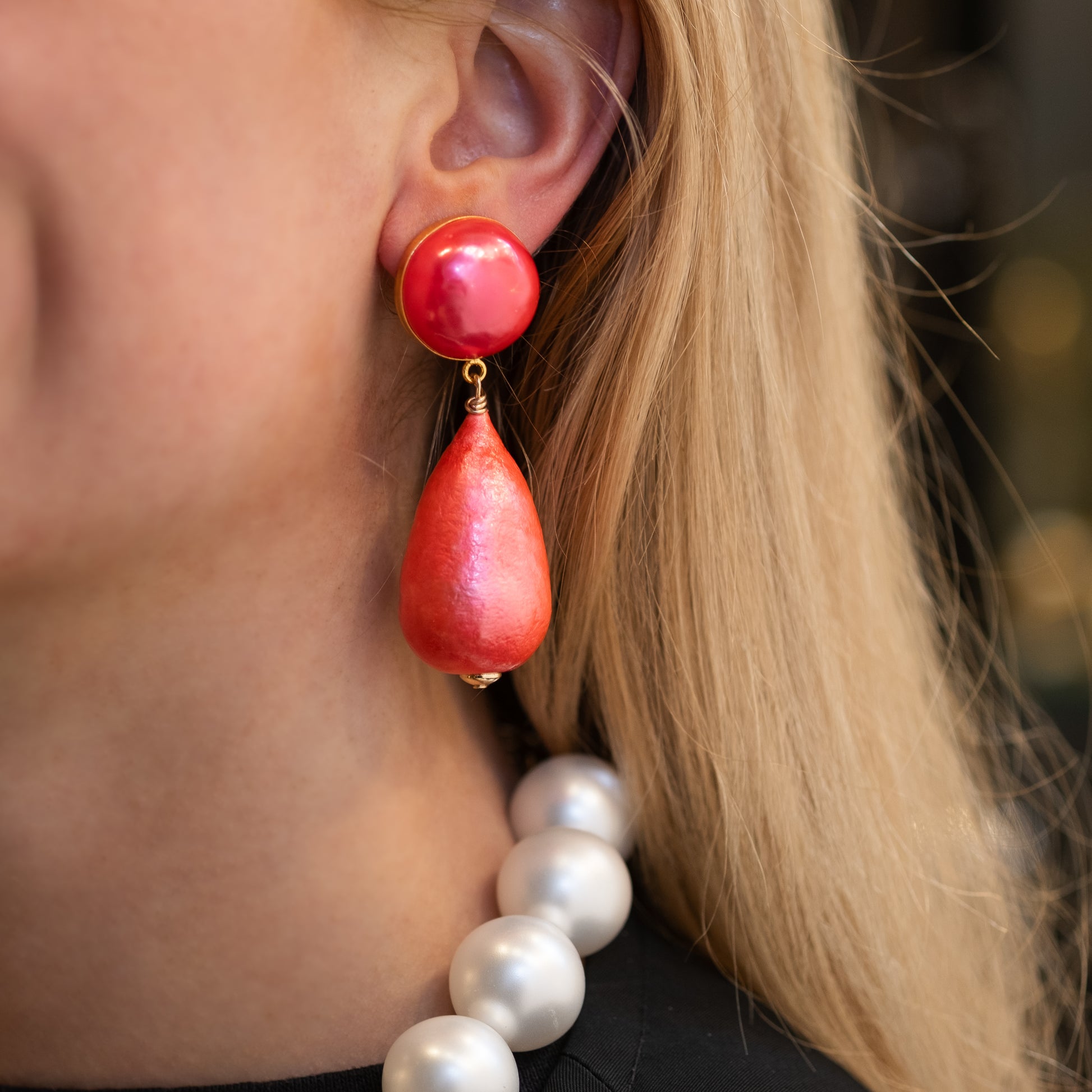 These classic earrings in coral color exude a timeless charm. The sophisticated design and warm hue make them a versatile choice for any occasion. All our jewelry is nickel-free and anti-allergic. 🧡 The Carolina earrings contain faux pearls, are lightweight, gold-plated and with a stud earring. The vibrancy of the coral color adds a touch of freshness to any outfit, whether for a special occasion or for everyday wear. 💋 These earrings are an elegant addition to any jewelry collection. 💌