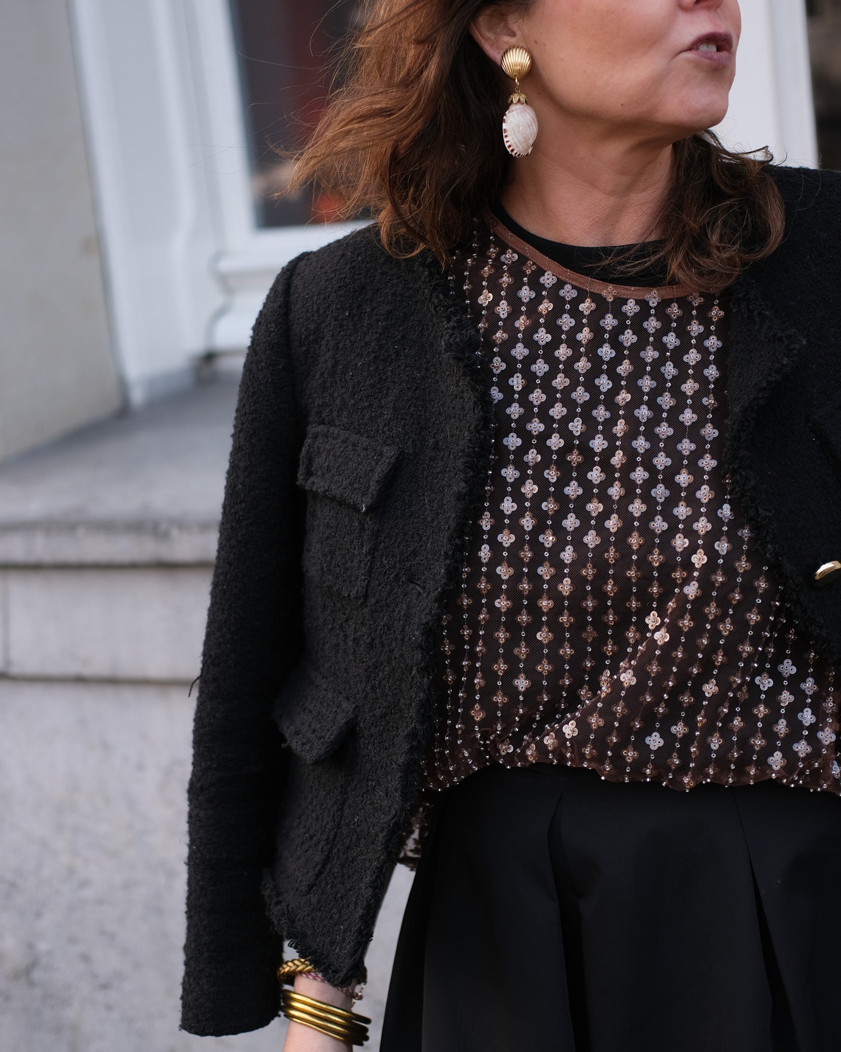The design features genuine shells combined with gold-tone details in a classic clip closure. The natural shapes and subtle color variations make each pair unique and give the earrings an elegant, summery look with a distinct vintage signature.