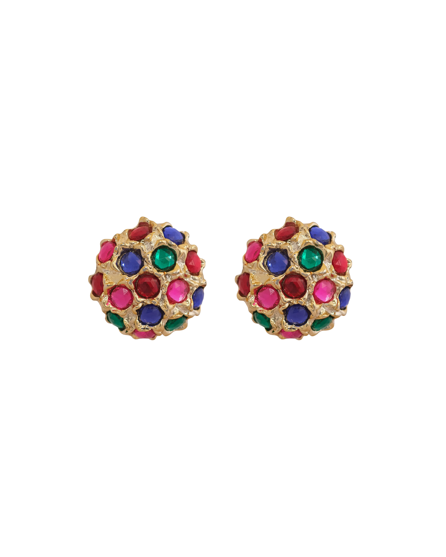 These vintage earrings date back to the 80s and have a distinctive design with multiple colorful stones in a gold-colored setting ✨