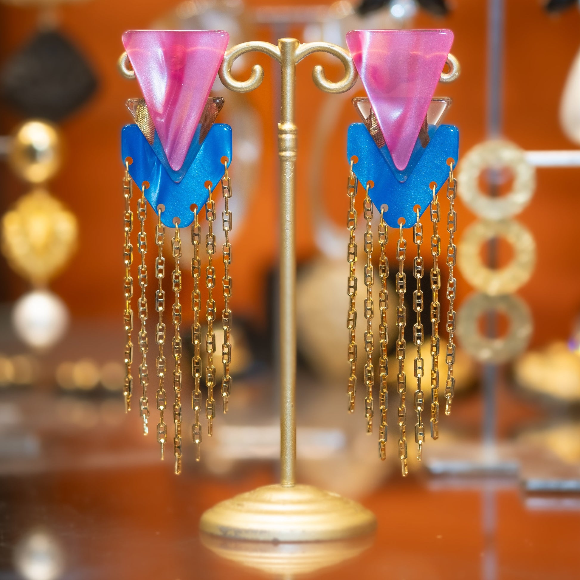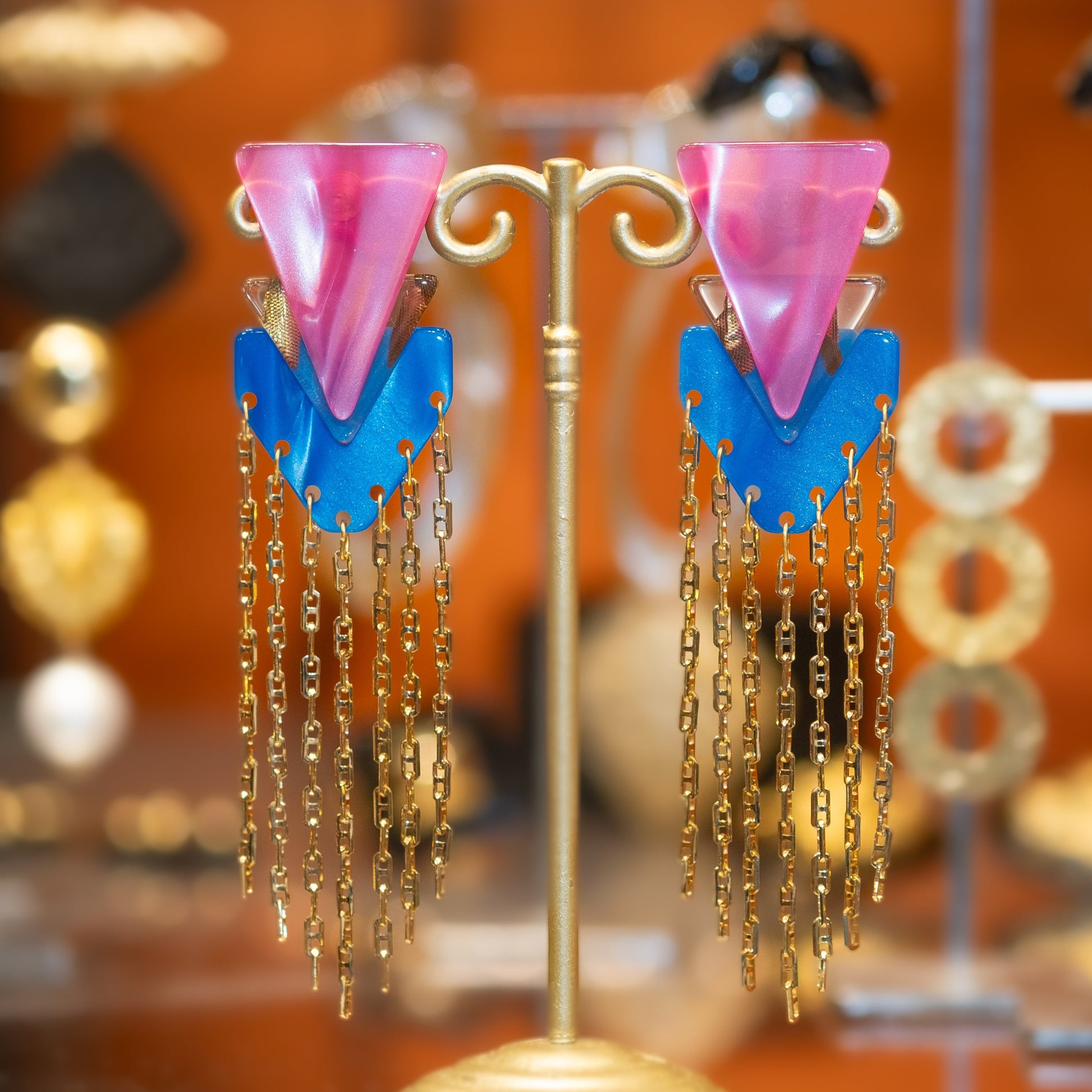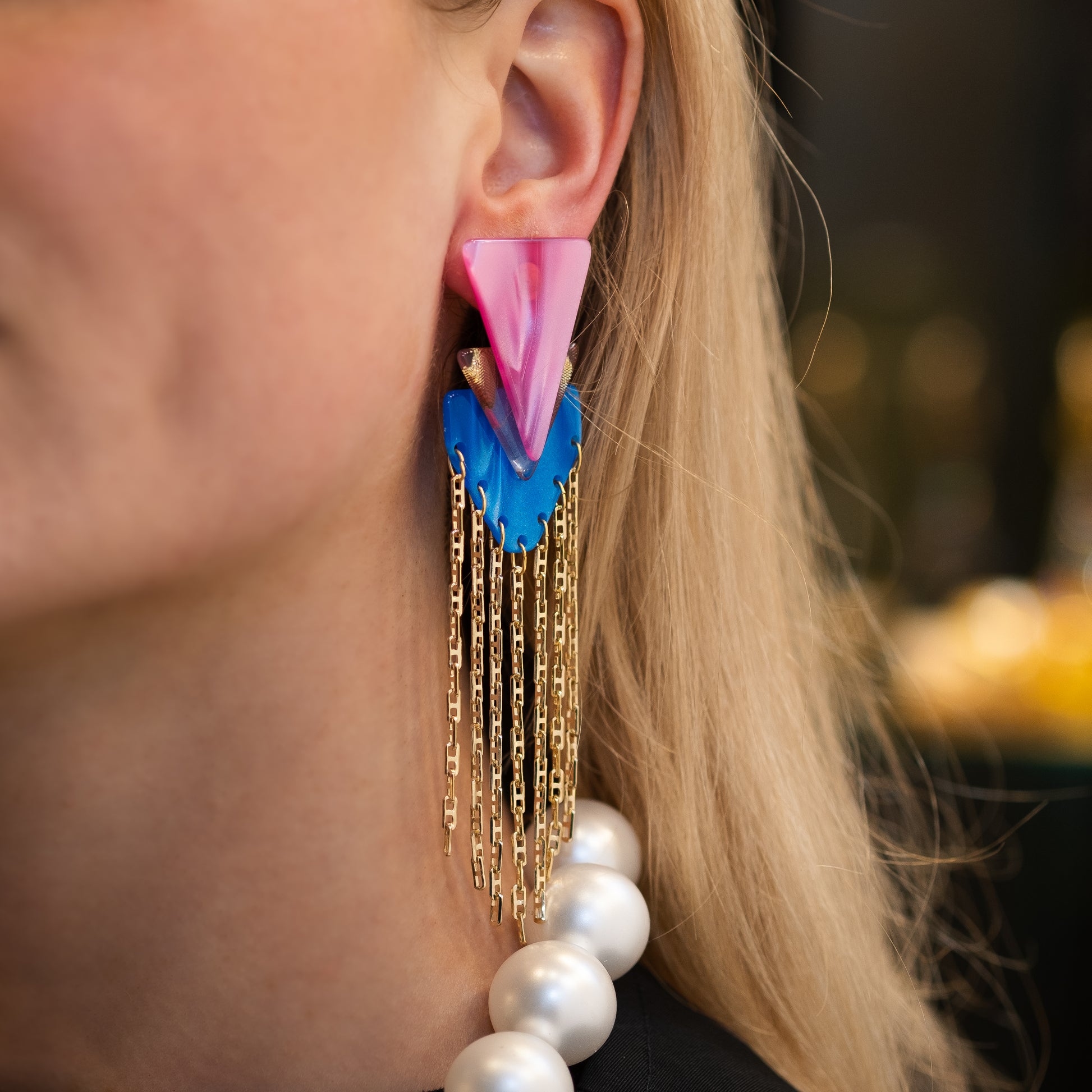 The Josephine earrings combine vibrant shades of blue and pink in a charming way. With their handcrafted design they exude a subtle, yet striking beauty, making them perfect for any occasion. All our jewelry is nickel-free and anti-allergic. 🧡 The Josephine earrings contain Italian resin with chains, are lightweight, with a stud earring. The fusion of blue and pink creates a refined contrast that gives a playful and elegant look. 💋 Whether worn for a special occasion or as an everyday accessory, these earrings add a touch of color and sophistication to any outfit. 💌