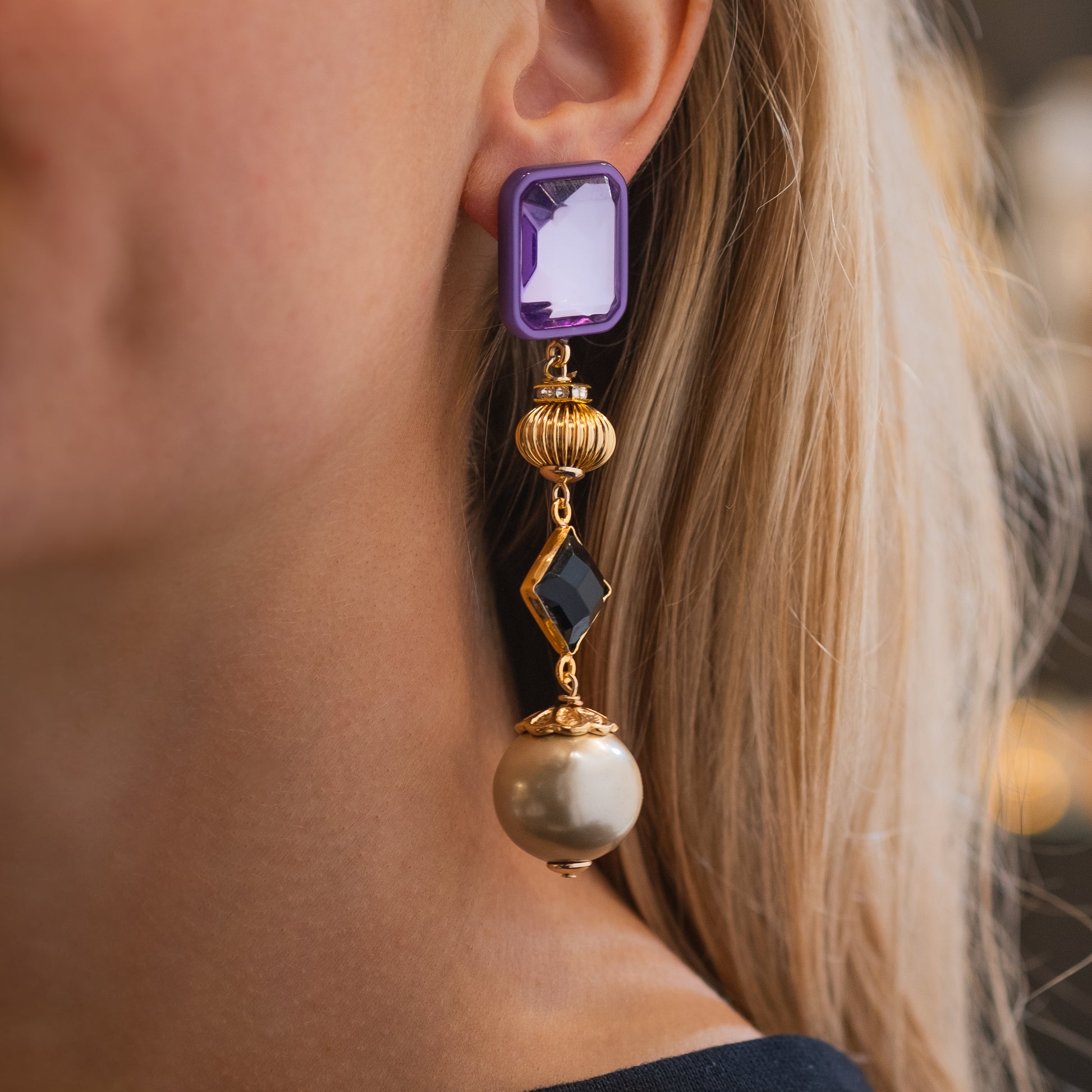 The Laurence earrings feature purple stones and beige pearls. 💜 All our jewelry is nickel-free and anti-allergic. 💖 These earrings combine color and elegance, perfect for special occasions or a stylish twist to your everyday outfit. 💫