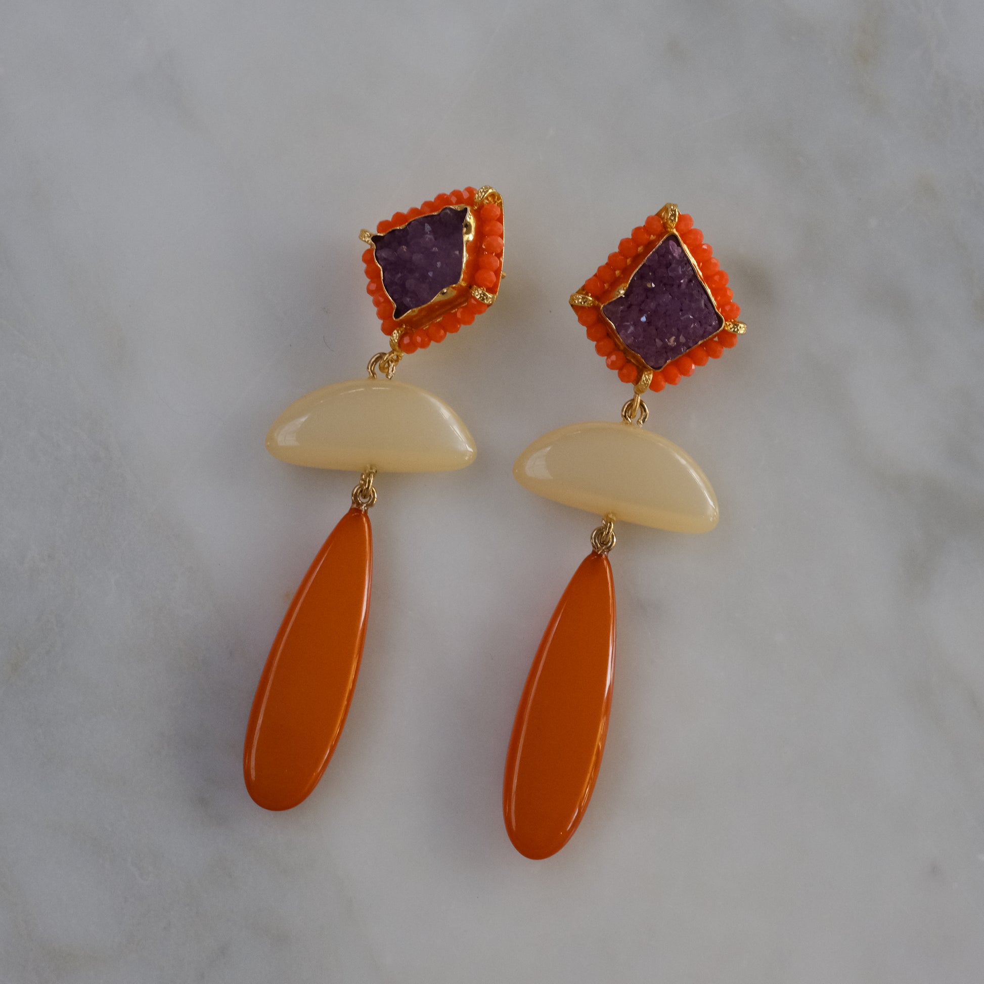 These earrings from BerNice by Parisienne are handmade and consist of a combination of materials that provide a vibrant look.