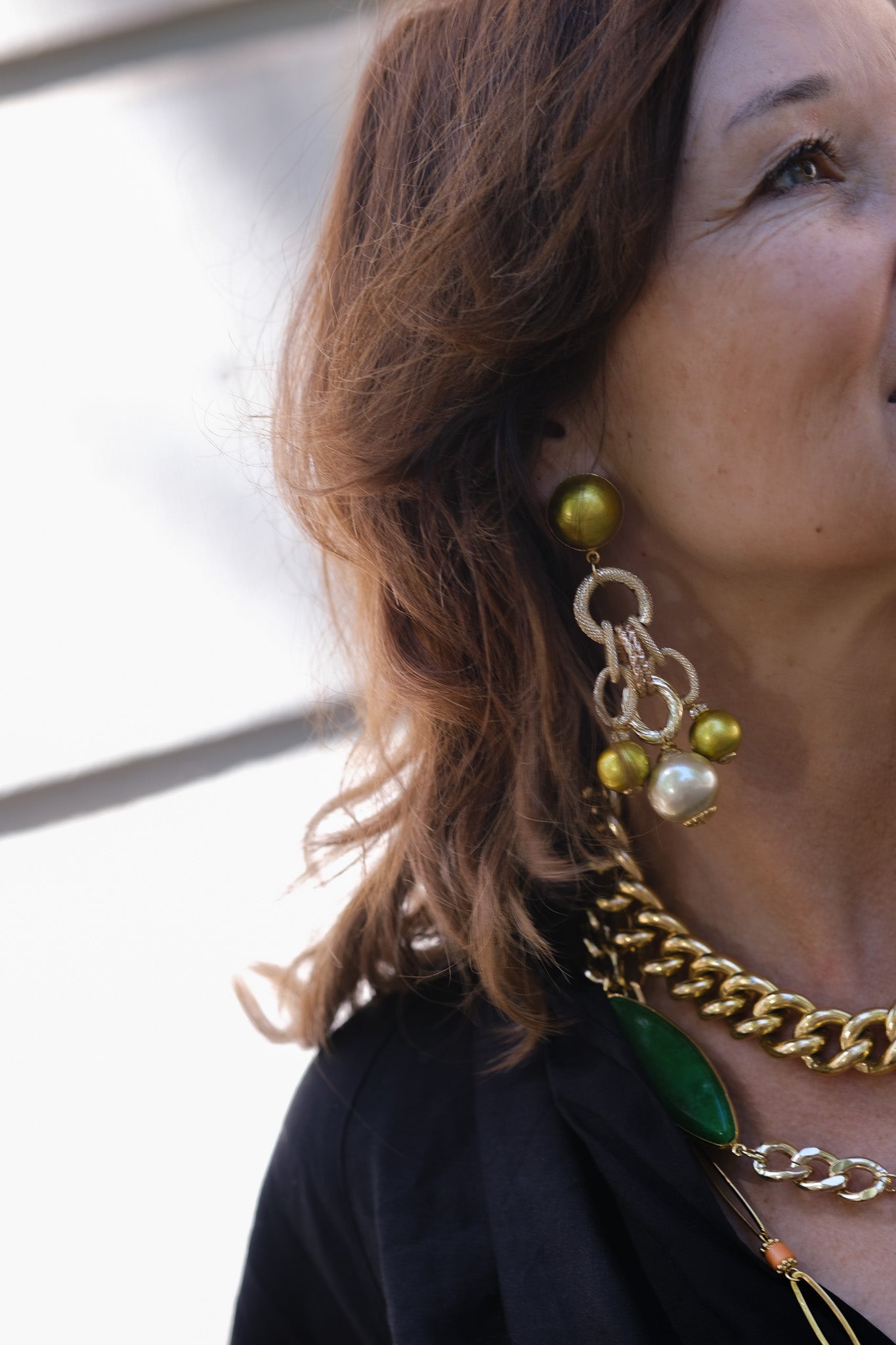 The Mireia earrings are a real eye-catcher. ✨ With their distinctive shape and stylish appearance, they immediately attract attention. They are handmade by BerNice by Parisienne and constructed from different materials with an eye for detail. All our jewelry is nickel-free and anti-allergic.