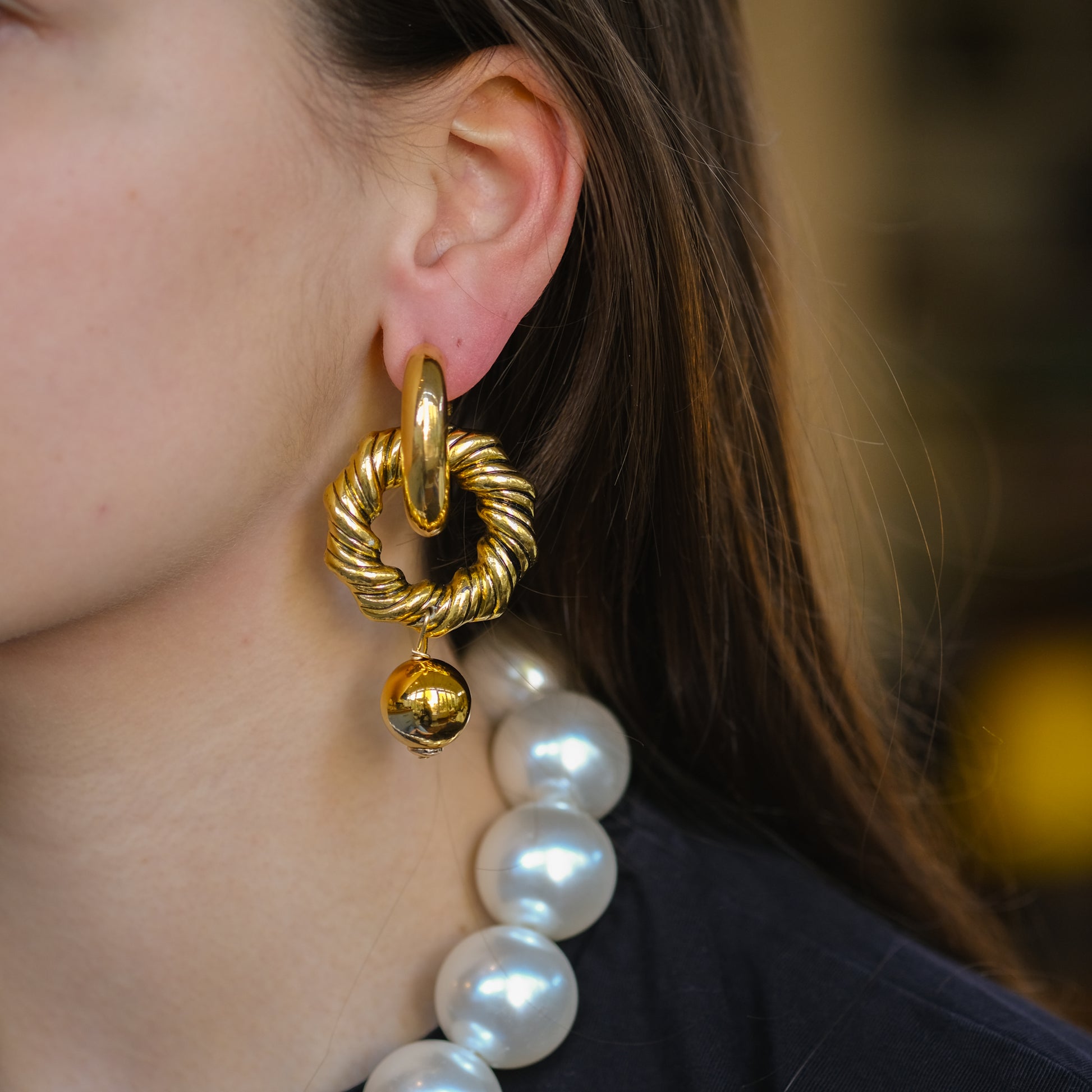 Élisabet is elegant and timeless. 🕊️ The creoles with gold wreath make her a classic favorite.
