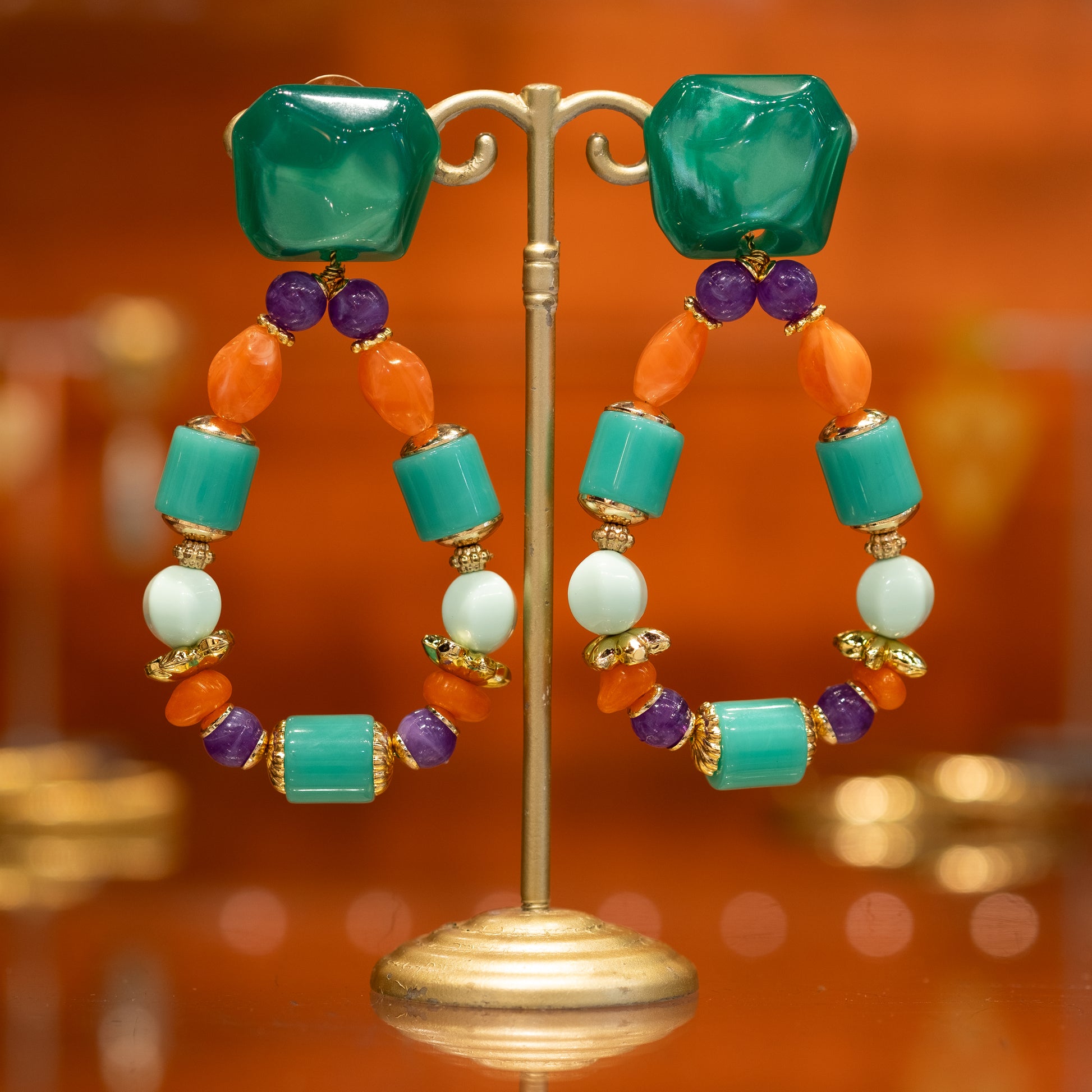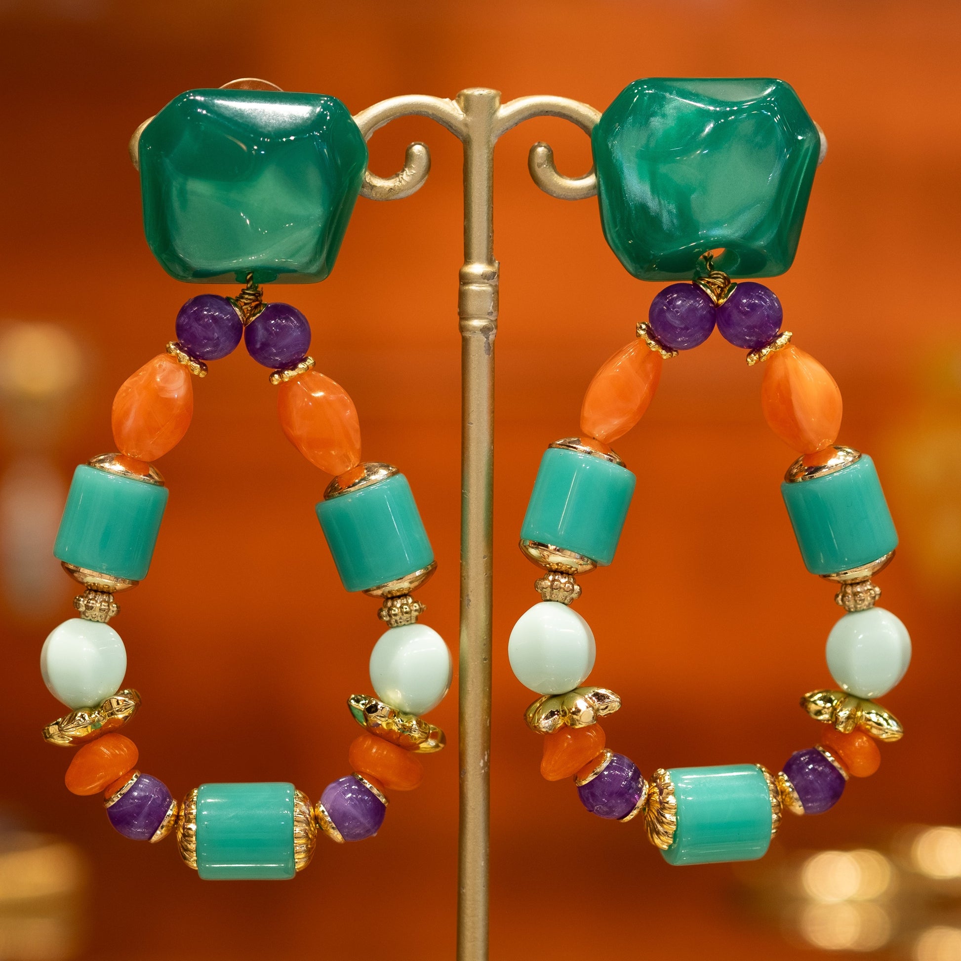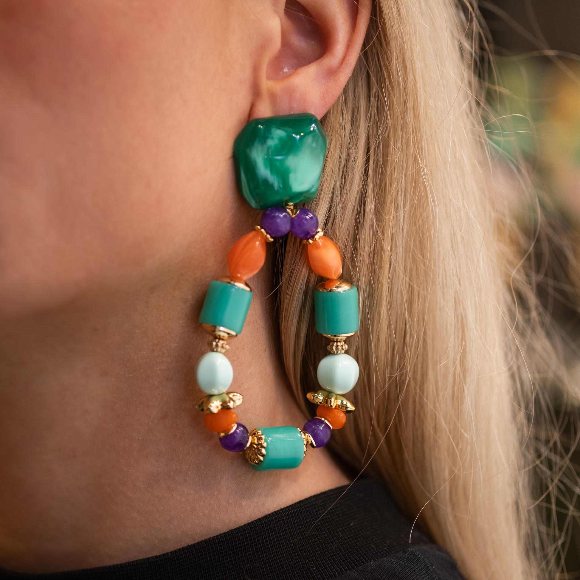 The Océane earrings are a colorful and artistic addition to your jewelry collection. 🧡 With a resin top and a mix of various stones in shades of turquoise, purple and orange, they radiate creativity and individuality. 💋 All our jewelry is nickel-free and anti-allergic. These earrings are perfect for creating a bold and unique look, ideal for both everyday adventures and special occasions. 💌