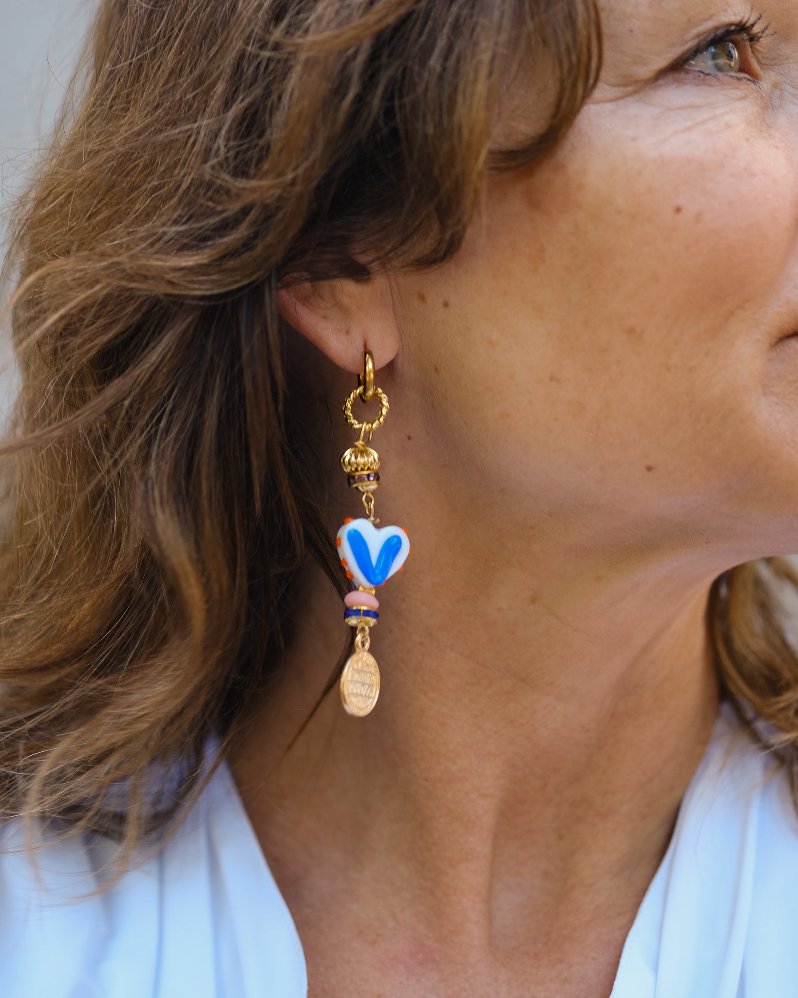 The Vittoria earrings are a real eye-catcher for those who love a feminine, powerful look. 💥 Their elegant design perfectly complements both casual outfits and evening gowns. They are handmade from various materials and designed with comfort and style in mind. 💫 All our jewelry is nickel-free and hypoallergenic.