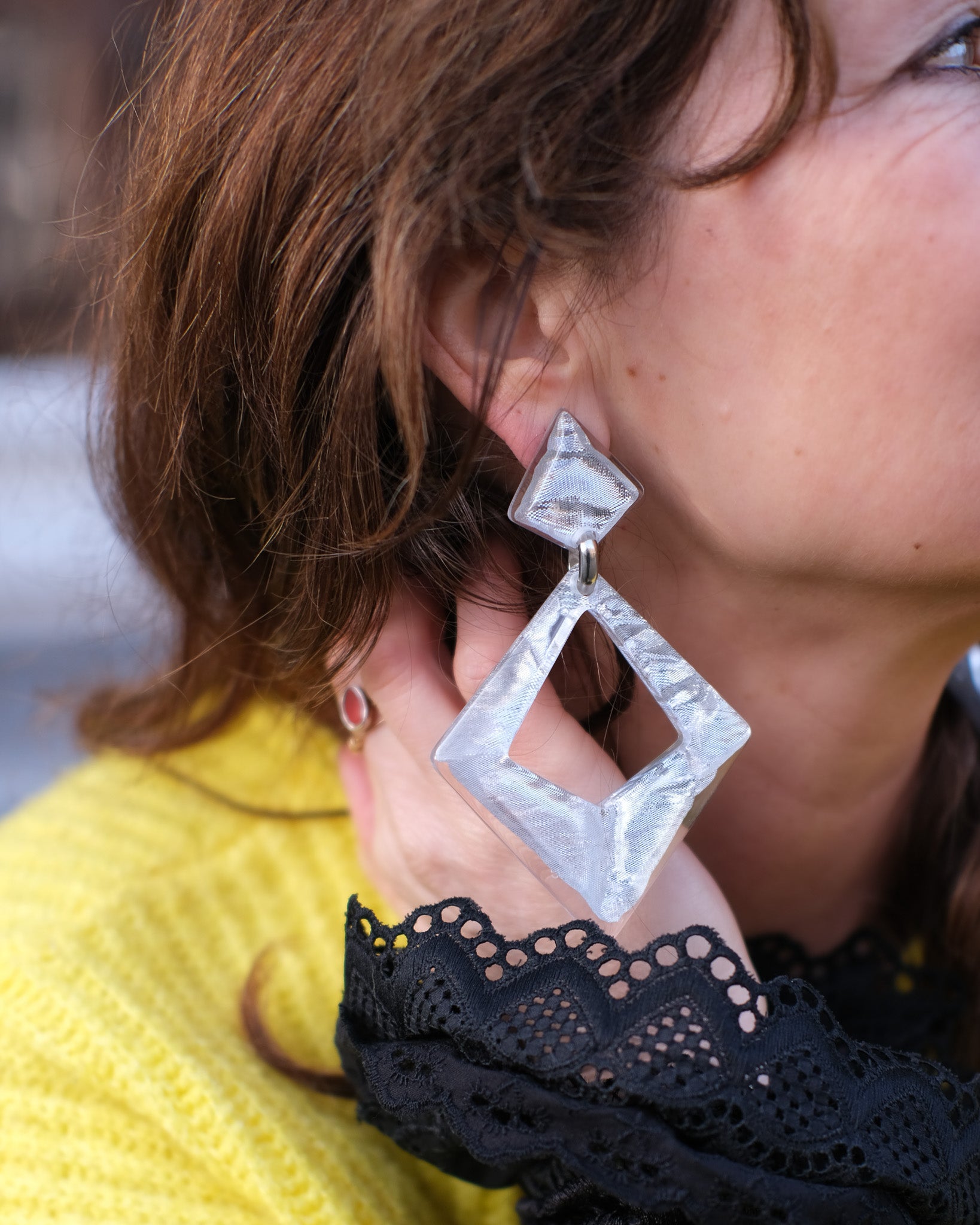 De Anaëlle oorbellen vallen op door hun vorm en moderne uitstraling. 🌟 Een echte blikvanger, of je nu naar kantoor gaat of een feestje hebt. Handgemaakt door BerNice by Parisienne, opgebouwd uit verschillende materialen met zorg voor comfort en stijl.