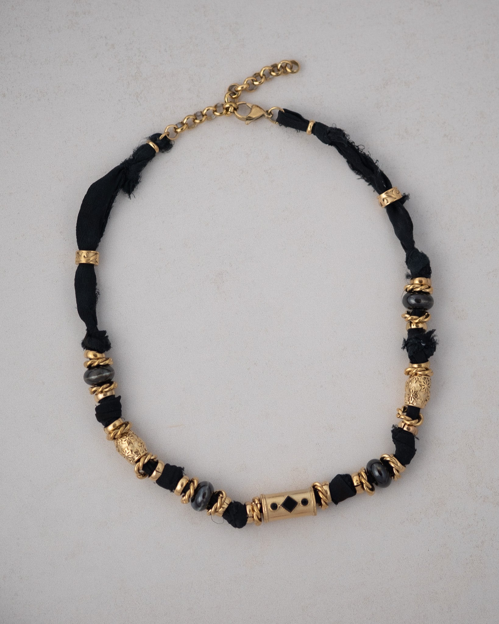 De Auretta ketting ✨ Handgemaakt van stainless steel en verfijnd afgewerkt met zijde. Een unieke combinatie van duurzaamheid en elegantie die elke outfit een luxe uitstraling geeft. 💕