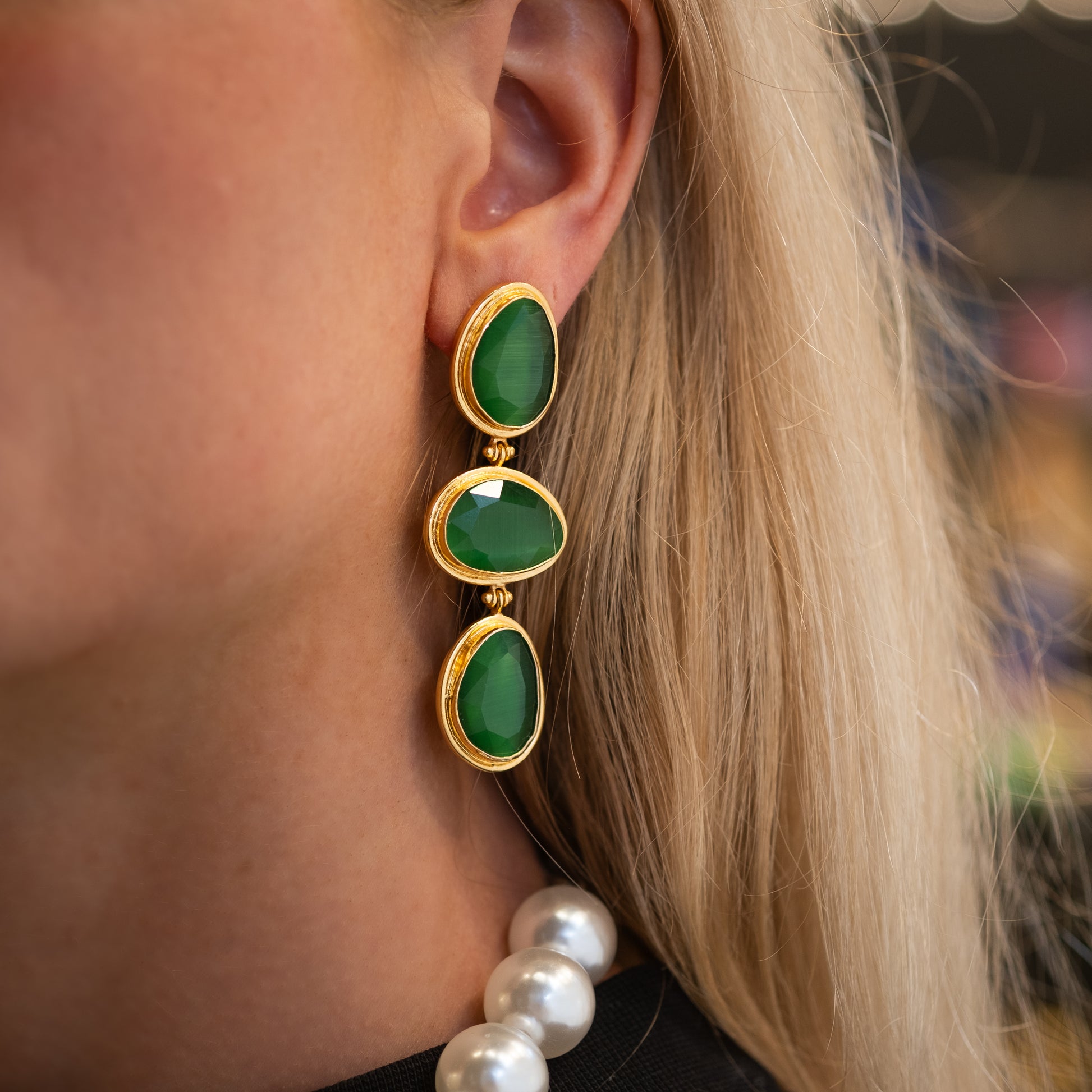 De Céleste oorbellen stralen klassieke elegantie uit met hun vergulde brass ontwerp en prachtige groene cat eye stenen. 🧡 Al onze sieraden zijn nikkelvrij en anti-allergisch. Deze oorbellen combineren tijdloze stijl met een moderne flair, waardoor ze perfect zijn voor zowel formele gelegenheden als voor een stijlvolle dagelijkse look. 💋 De rijke groene kleur van de cat eye stenen zorgt voor een luxe en verfijnde uitstraling, waardoor de Céleste oorbellen een onmisbaar accessoire zijn. 💌