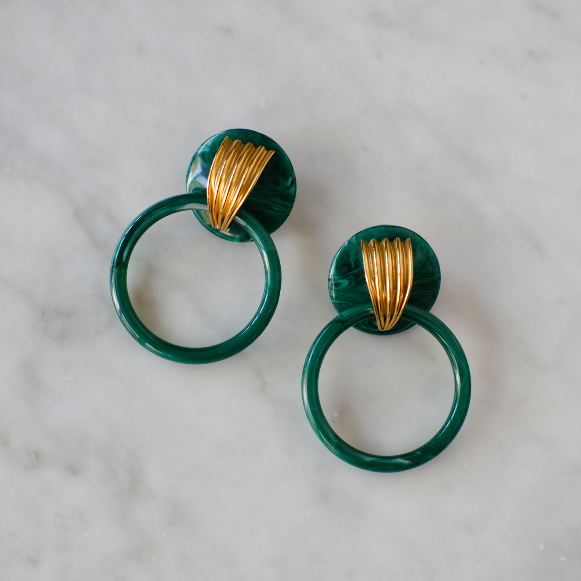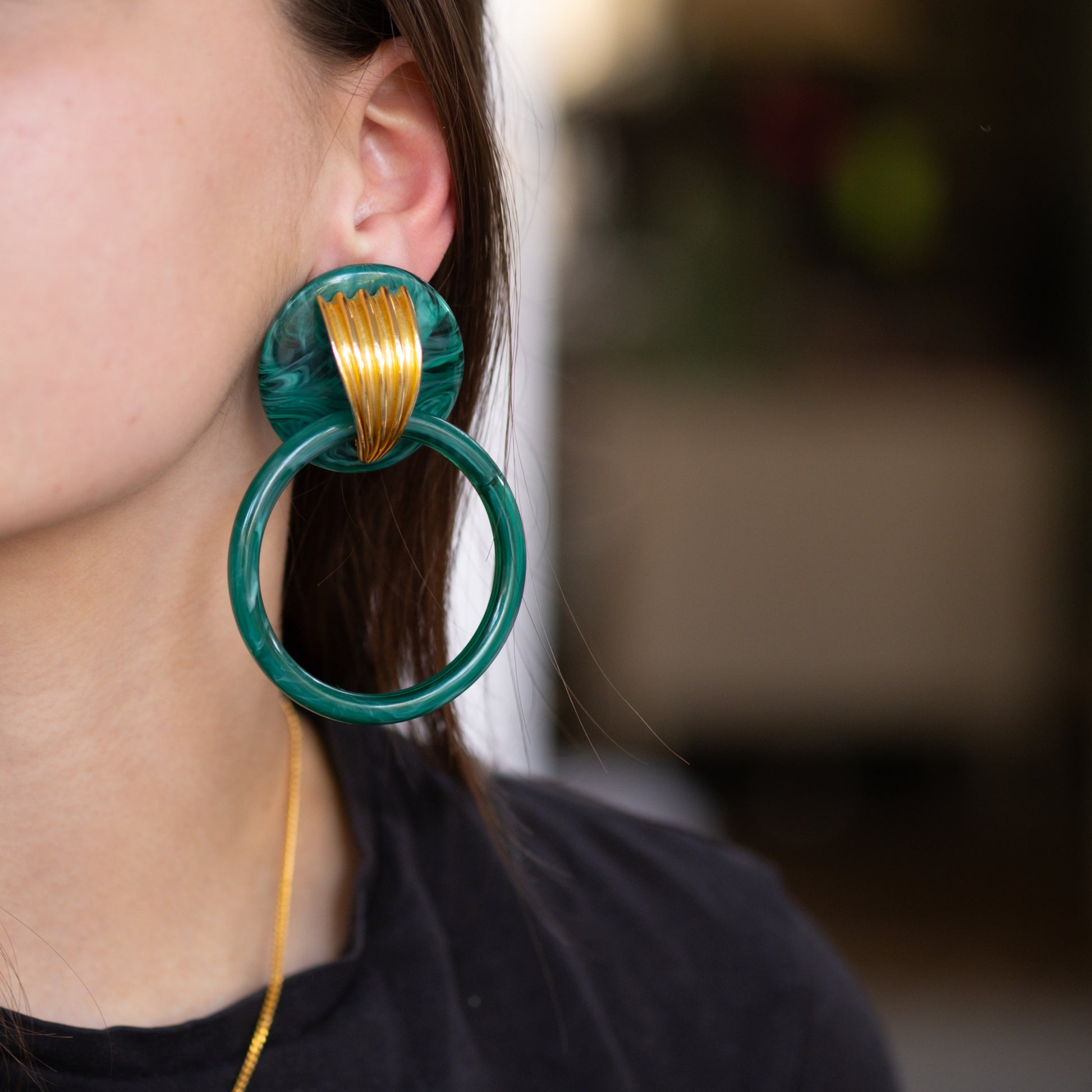 De Donatella oorbellen zijn een uniek vintage item uit de jaren 70, rechtstreeks uit Italië. 🇮🇹 Deze opvallende clip oorbellen – ideaal voor wie geen gaatjes heeft – zijn gemaakt van resin en hebben een uitgesproken retro look. 🌀