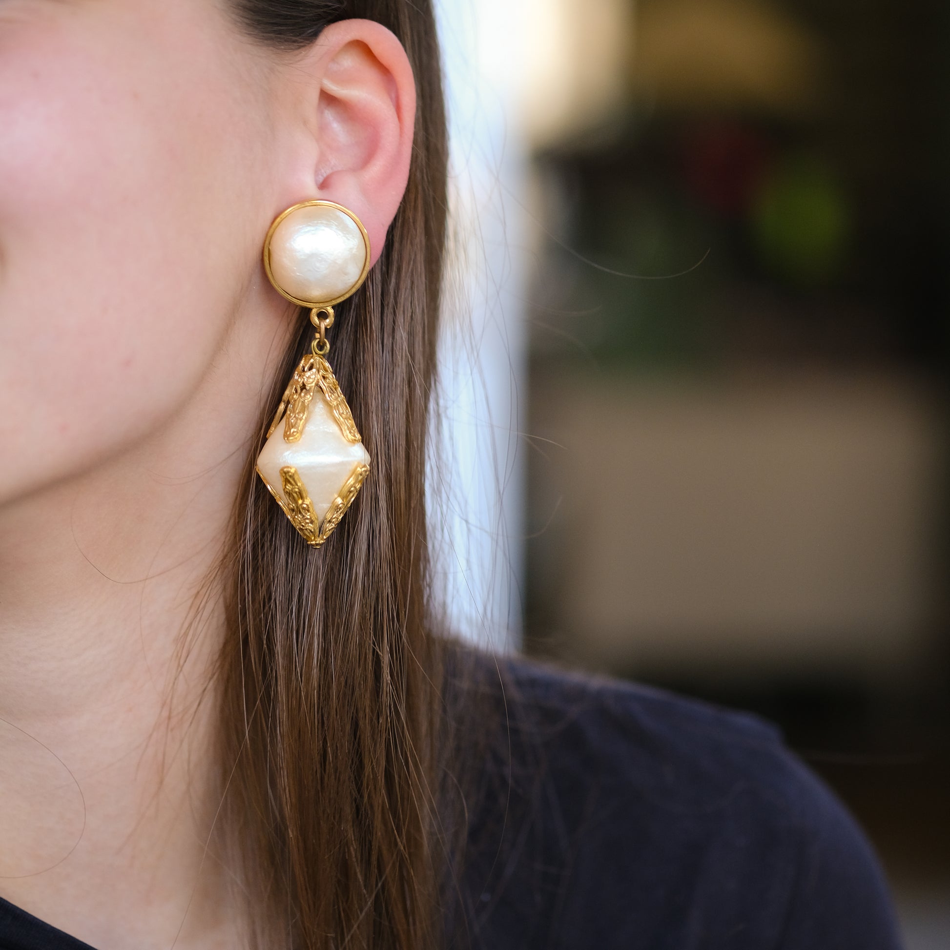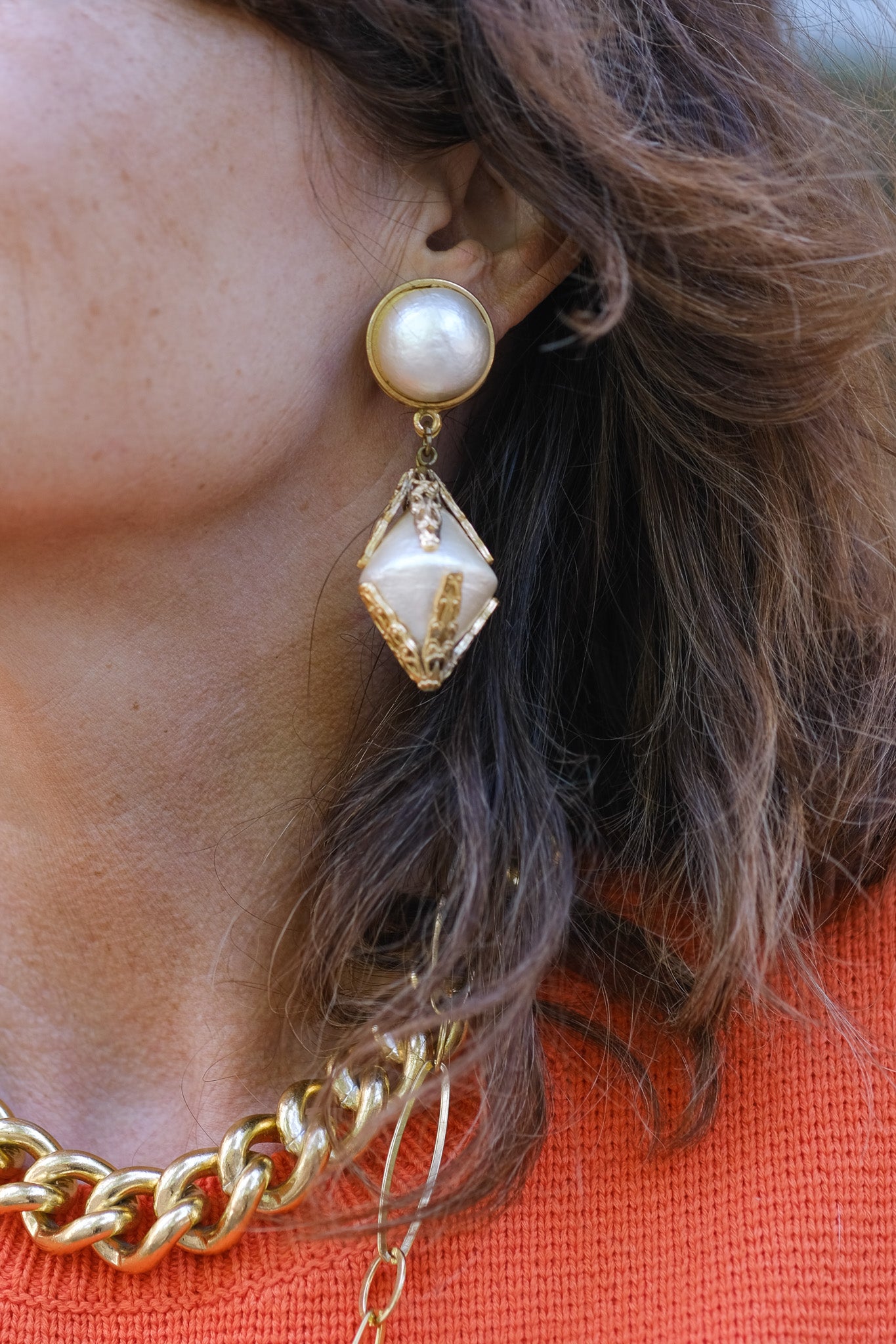 De Lorenza vintage oorbellen zijn een subtiel parelstatement uit de jaren 70, ontworpen in Italië. 🇮🇹 De zachte parelglans wordt versterkt door een gedetailleerd goudkleurig frame met een grafische twist. Dankzij de clip-sluiting zijn ze comfortabel te dragen, ook zonder gaatjes. Al onze sieraden zijn nikkelvrij en anti-allergisch.